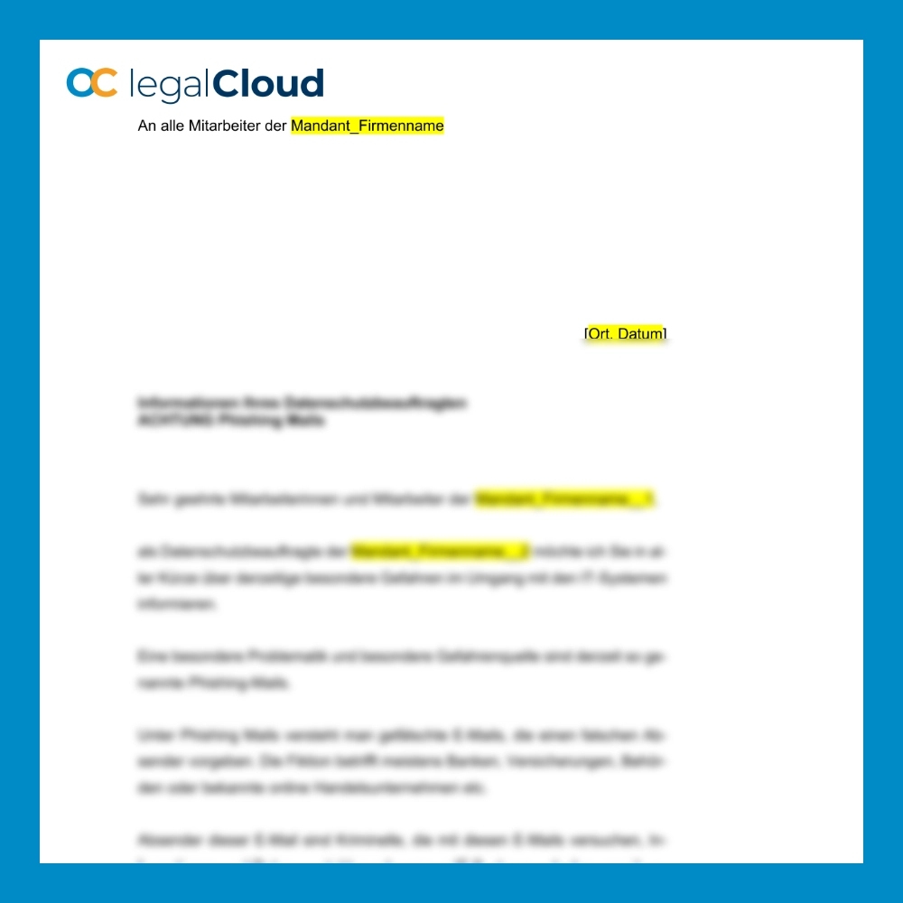 Mit dieser Vorlage sensibilisieren Sie Ihre Mitarbeiter für Phishing-Mails und den sicheren Umgang mit externen Speichermedien. Ein Muss, um Ihre IT-Systeme zu schützen und den Datenschutz effektiv umzusetzen.