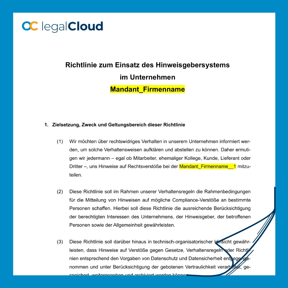 Compliance Richtlinie Einsatz Hinweisgebersystem – DSGVO und HinSchG konform