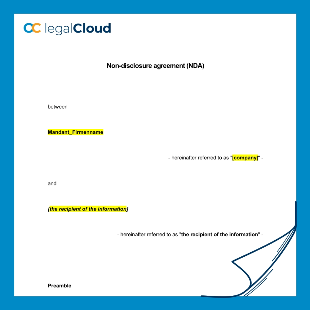 Geheimhaltungsvereinbarung NDA für Geschäftsverhandlungen und Datenschutz Englisch