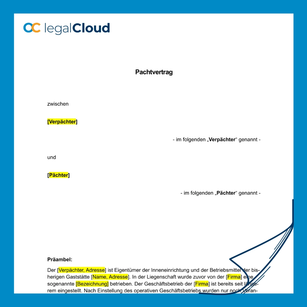 Gewerblicher Pachtvertrag Gastronomie – rechtssichere Vorlage für Restaurant, Café und Gaststätte