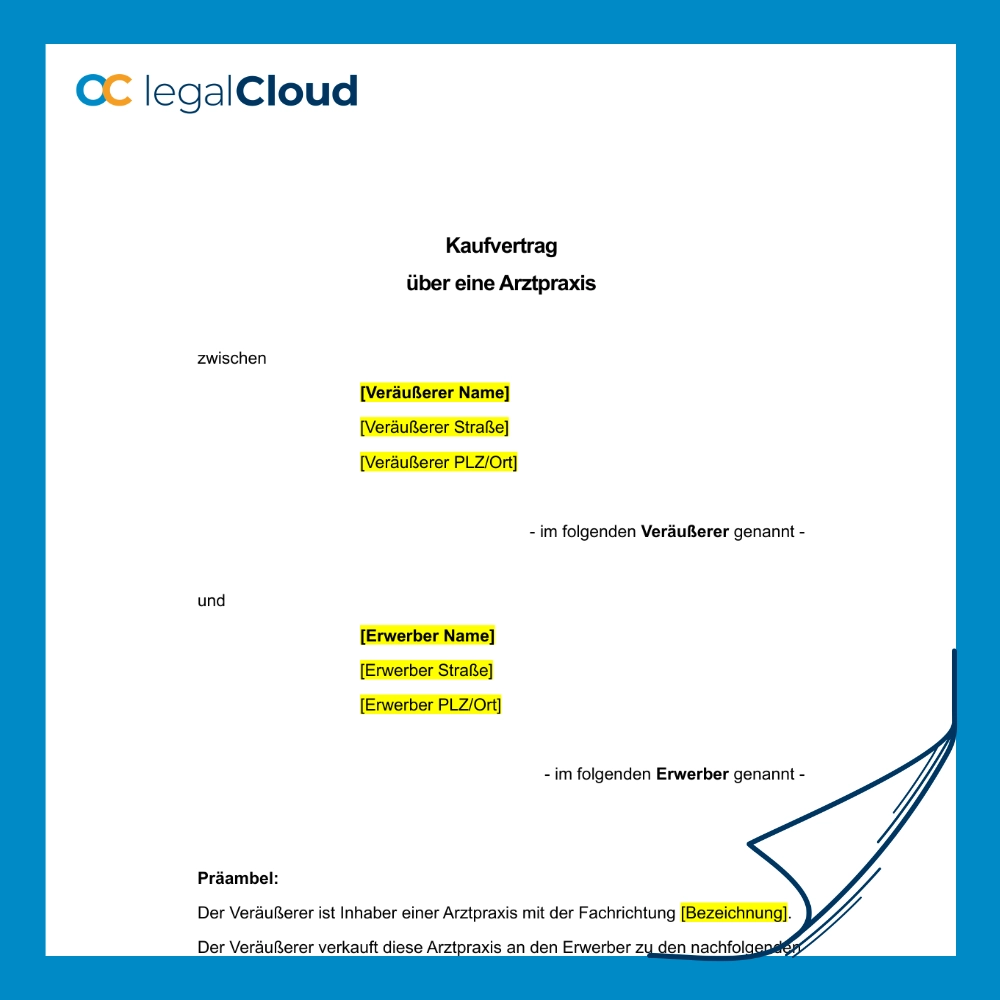Kaufvertrag für Arztpraxis – Vorlage für den Verkauf einer Praxis mit Patientenstamm und Einrichtung