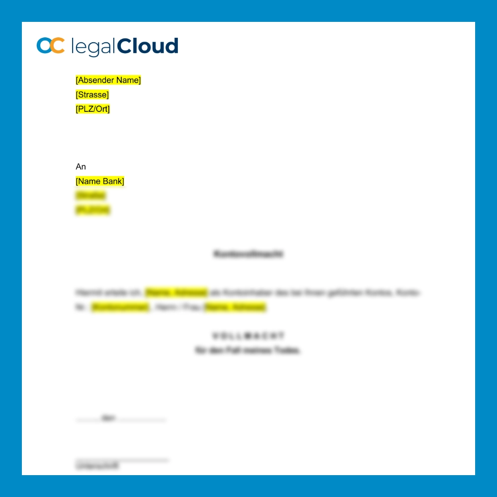 Kontovollmacht für den Todesfall – Vorlage zur Bankvollmacht im Todesfall für Kontoinhaber