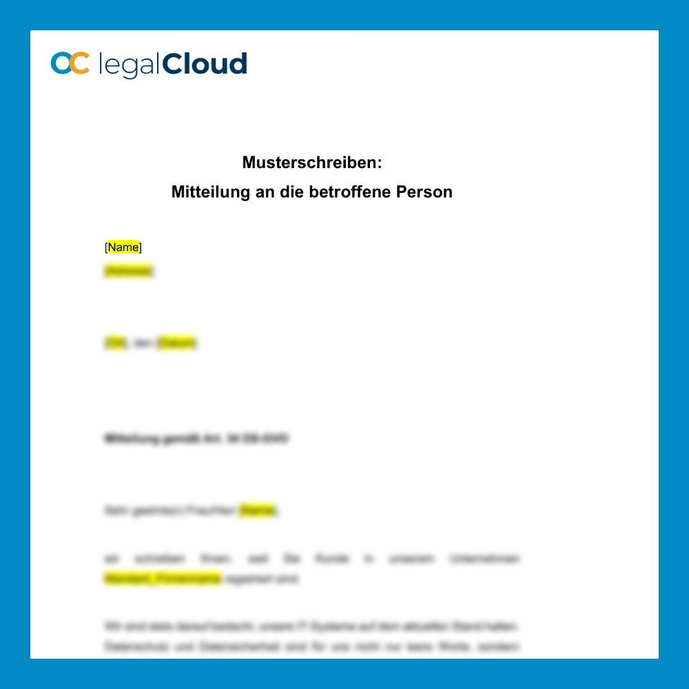 Mitteilung an betroffene Person – Datenschutzvorfall nach Art. 34 DSGVO