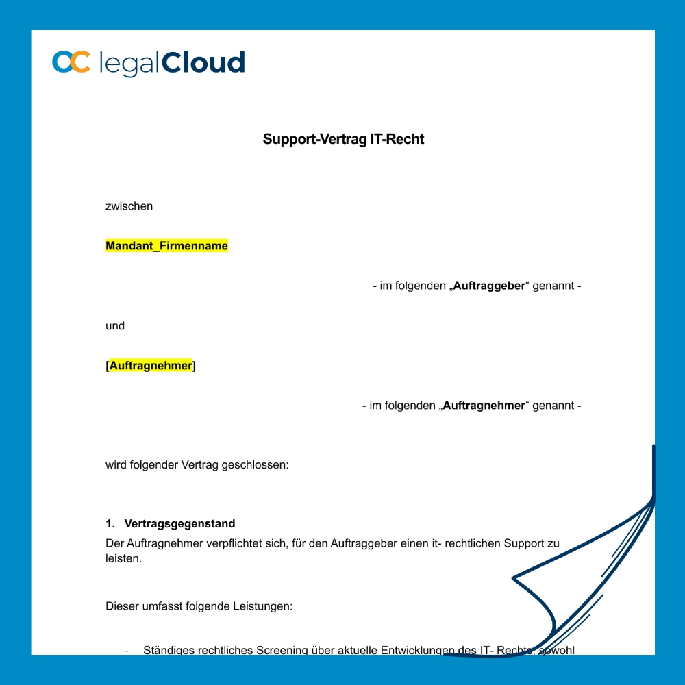 Mustervertrag IT-Rechtlicher Support – Datenschutz und Compliance für Unternehmen