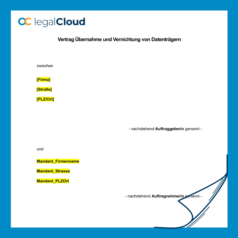 Mustervertrag Übernahme und Vernichtung von Datenträgern – DSGVO konform