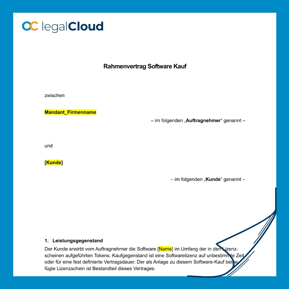 Rahmenvertrag Softwarekauf – rechtssichere Vorlage mit Lizenzregelung