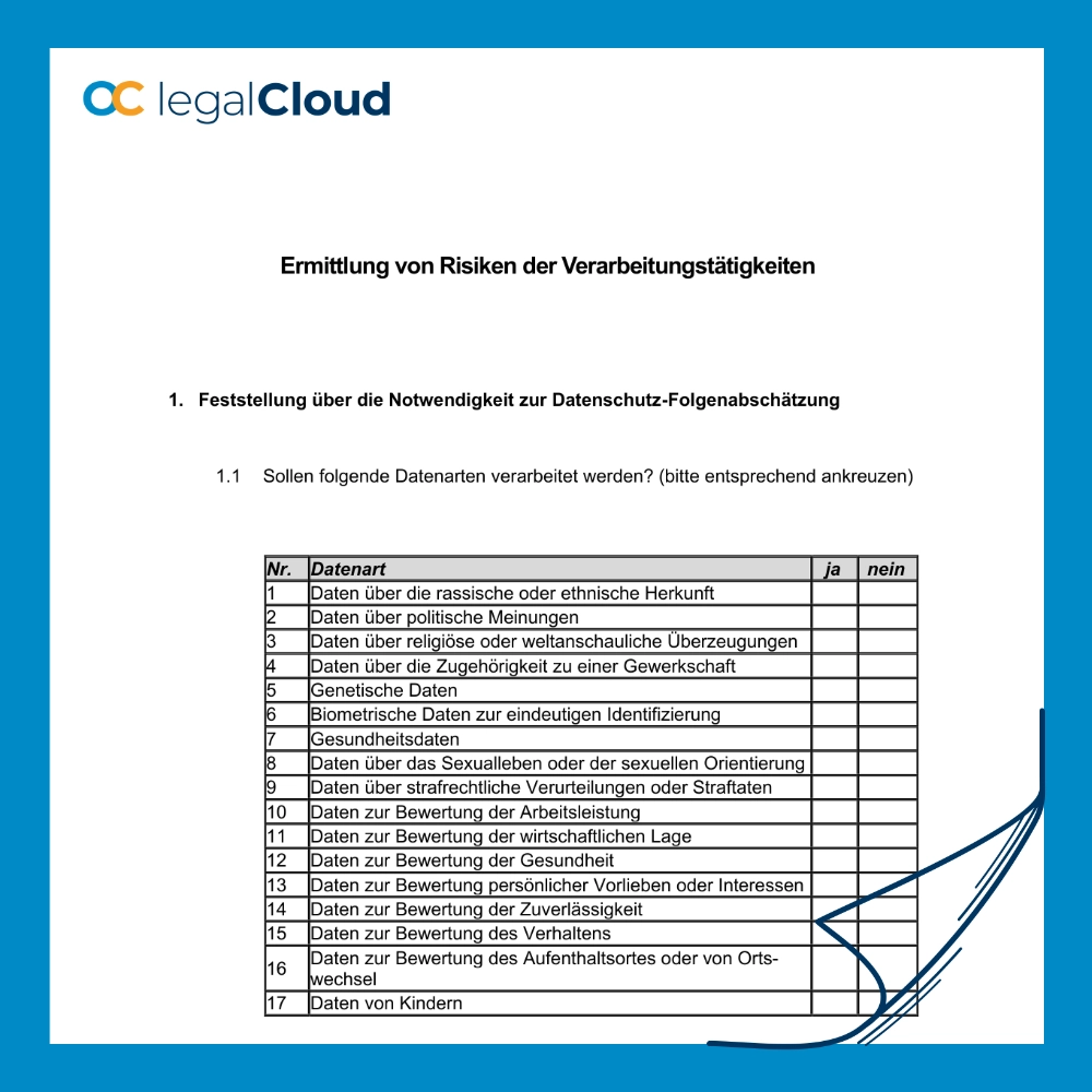 Risikoanalyse Verarbeitungstätigkeiten – Muster zur Prüfung Datenschutz-Folgenabschätzung nach DSGVO