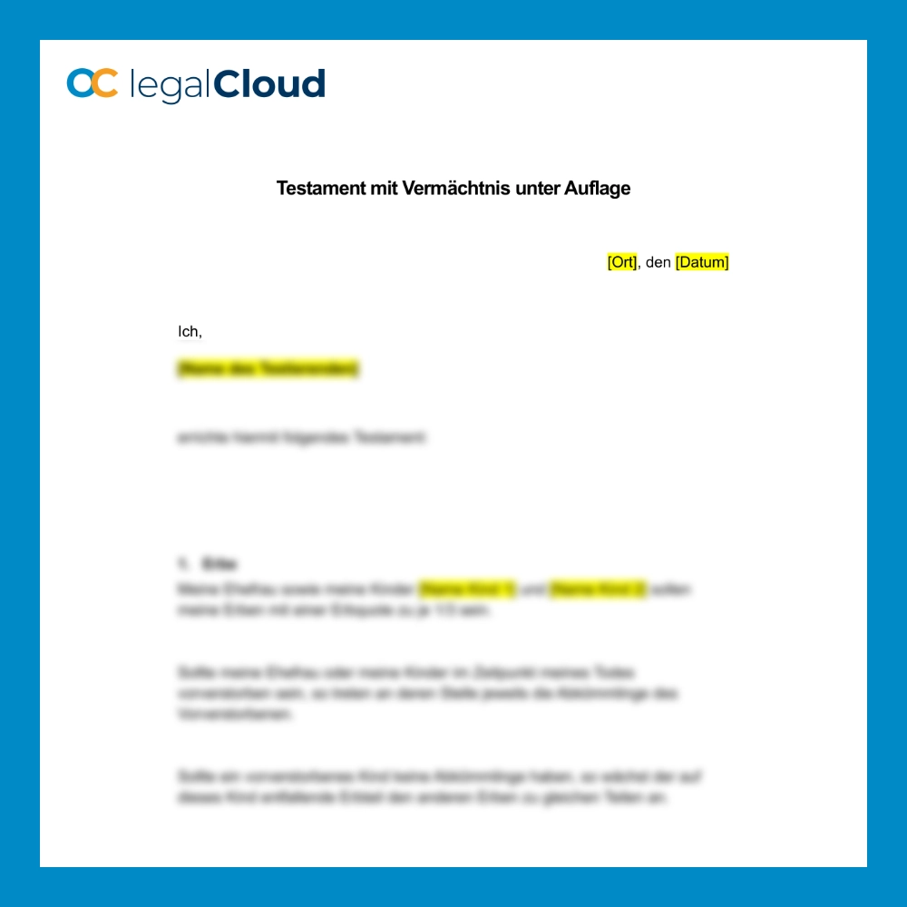 Testament mit Vermächtnis unter Auflage – Vorlage mit Erbregelung und Testamentsvollstreckung