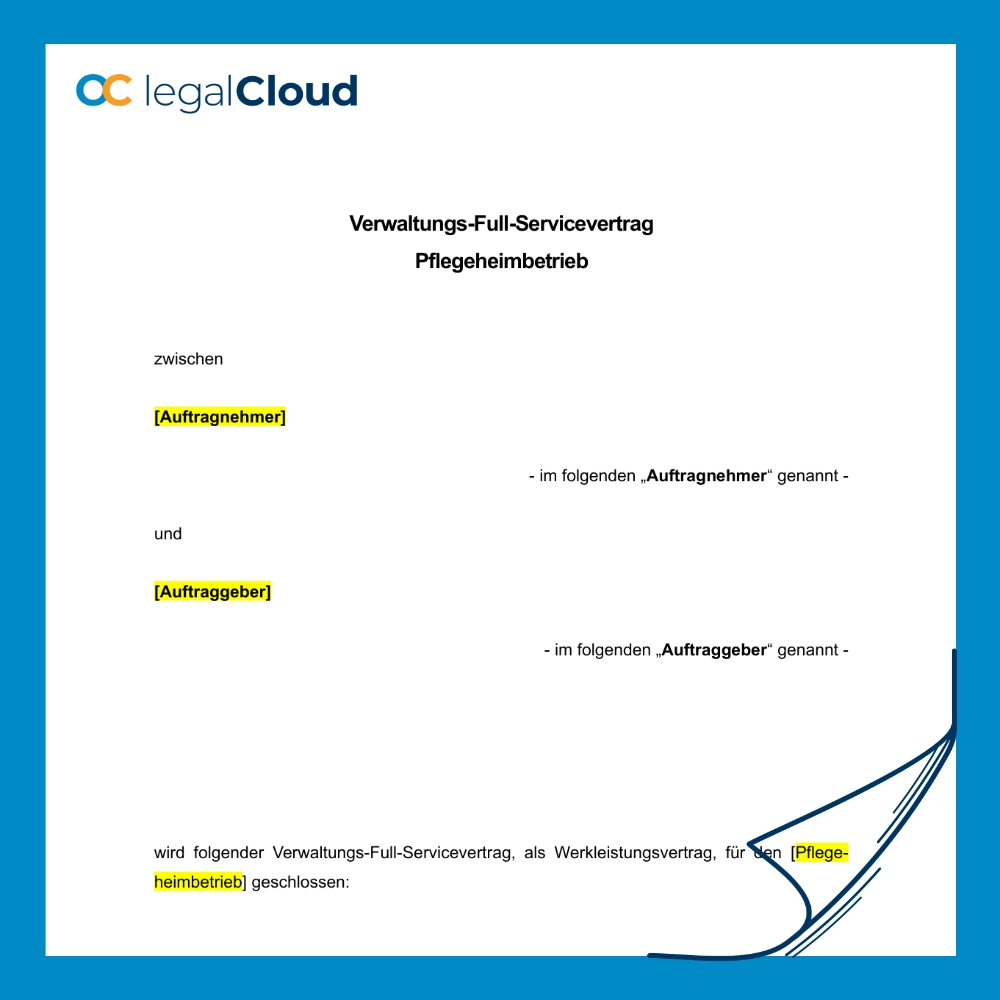 Verwaltungs-Full-Servicevertrag Pflegeheim Muster für Büroverwaltung