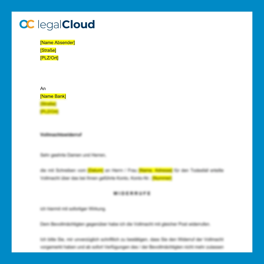 Vollmachtswiderruf Konto – Vorlage für den Widerruf einer Kontovollmacht bei der Bank