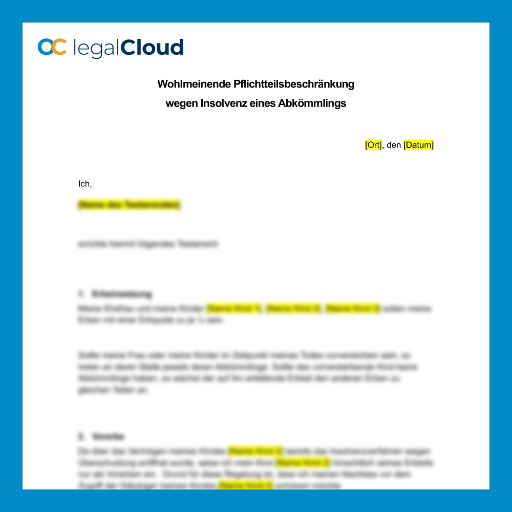 Wohlmeinende Pflichtteilsbeschränkung bei Insolvenz eines Abkömmlings – Testament Vorlage mit Vorerbschaft und Vollstreckung